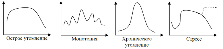 Различия в динамике работоспособности разных негативных функциональных состояний представлены на графиках, приведенных ниже: