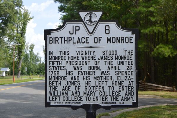 Джеймс Монро родился 28 апреля 1758 года в округе Уэстморленд, штат Виргиния, в семье плантатора Спенса Монро (1727—1774) и Элизабет Джонс (1730—1772). Помимо Джеймса, в семье было ещё четверо детей: Элизабет, Спенс, Эндрю и Джозеф Джонс. Руины усадьбы Монро в 1979 году была включены в Национальный реестр исторических мест[4][5].
