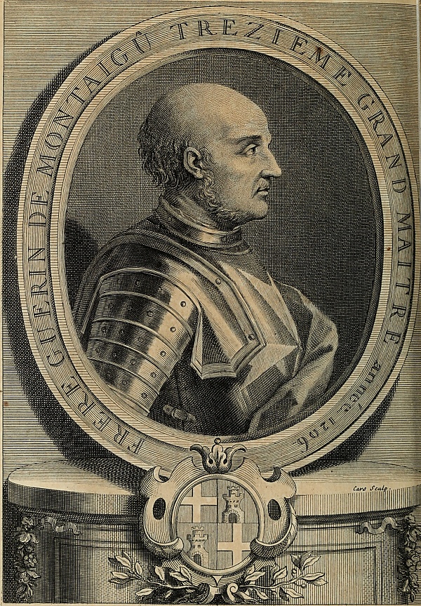 В первом томе «Истории рыцарей госпитальеров» Р. О. де Верто (в русском переводе «История мальтийских рыцарей») на двух разных гравюрах изображены предполагаемые портреты двух разных магистров ордена иоаннитов, когда основатель ордена Жерар Тен не считается первым его магистром: 13-й Гарен де Монтегю (фр. Guerin de Montaigû trezieme GM[6]) и 15-й Герен (фр. Gerin quinzieme GM[7]). Однако порядковые номера глав ордена меняются (сдвигаются), если основателя считать первым магистром — в таком случае Монтегю обозначается соответственно 13/14-м, а 15/16-м главами ордена.