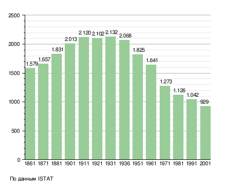 Население составляет 943 человека (2008 г.), плотность населения составляет 30 чел./км². Занимает площадь 31 км². Почтовый индекс — 41025. Телефонный код — 0536.
