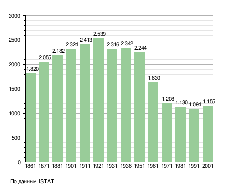 Население составляет 1250 человек (2008 г.), плотность населения составляет 52 чел./км². Занимает площадь 24 км². Почтовый индекс — 61010. Телефонный код — 0722.