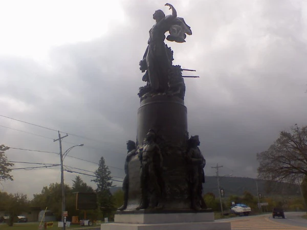 Стоящая на гранитном трёхступенчатом основании, цилиндрическая часть постамента увенчана аллегорической женской бронзовой фигурой Свободы, одетой в платье и развевающийся плащ с поднятой левой рукой. У ног Свободы в листве скрываются три фигуры — два солдата и индеец. По углам постамента у бронзового барабана расположены четыре фигуры в натуральную величину: индейский воин в штанах из оленьей кожи в головном уборе из перьев с томагавком в опущенной правой руке (северо-восток), французский солдат в униформе эпохи Монкальма (северо-запад), английский горец 42-го пехотного полка Британской армии Аберкромби и Амхерста в килте «Блэк-Уотч» (юго-запад), американский солдат «Грин-Маунтин-Бойз» (юго-восток). Француз и англичанин опираются на свои винтовки, а американец облокотился на постамент с винтовкой в правой руке дулом вниз. В тротуар вокруг монумента вмонтированы бронзовые барельефы гербов тринадцати колоний[2][8][9].