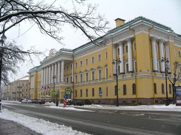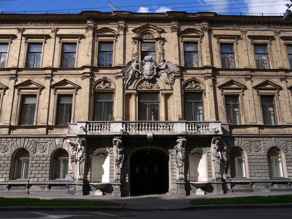 Дом Лобанова-Ростовского, «Дом со львами» — памятник архитектуры высокого классицизма[23]. Дом сооружен для князя А. Я. Лобанова-Ростовского в 1817—1820 гг. Треугольное в плане здание обращено главным фасадом к Адмиралтейскому проспекту. Треугольное в плане здание выходит фасадами наАдмиралтейский проспект, Вознесенский проспект и Исаакиевскую площадь и является важным составляющим элементом ансамбля центральных площадей. Главный фасад, выходящий на Адмиралтейский проспект украшен 8-колонным портиком, по сторонам центральной арки установлены беломраморные фигуры львов (скульп. П. Трискорни).