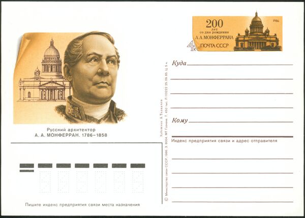 - В 1986 году, к 200 летию со дня рождения Монферрана, была выпущена почтовая карточка СССР.