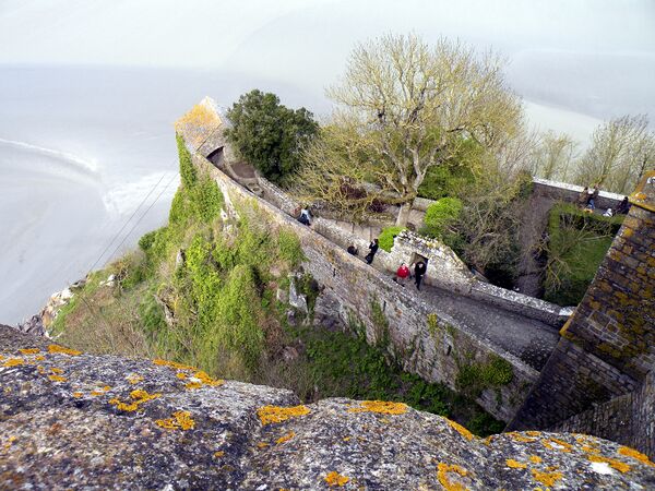 Первая линия бастионов служит обороне города, а вторая, расположенная у подножья аббатства, защищает сам монастырь. После утраты горой военного значения здесь некоторое время находилась ветряная мельница.