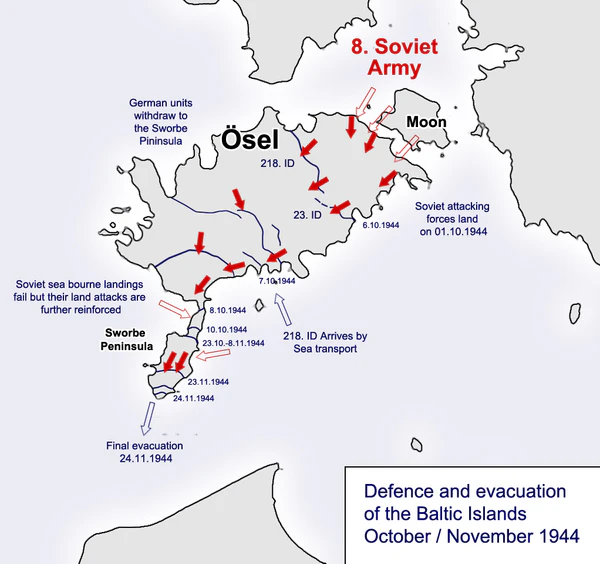 - Сааремаа — 5 октября — 23 ноября 1944 года.