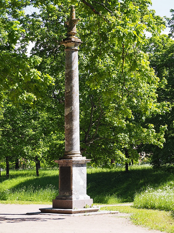 Колонна была изготовлена в Конторе строения Исаакиевского собора[11] и установлена 4 октября 1771 года[12] (И. Ф. Яковкин ошибочно называет 1782 год)[13]. Работами по установке руководил архитектор В. И. Неелов[14]. Колонна стала первым воинским мемориалом в Екатерининском парке[15].