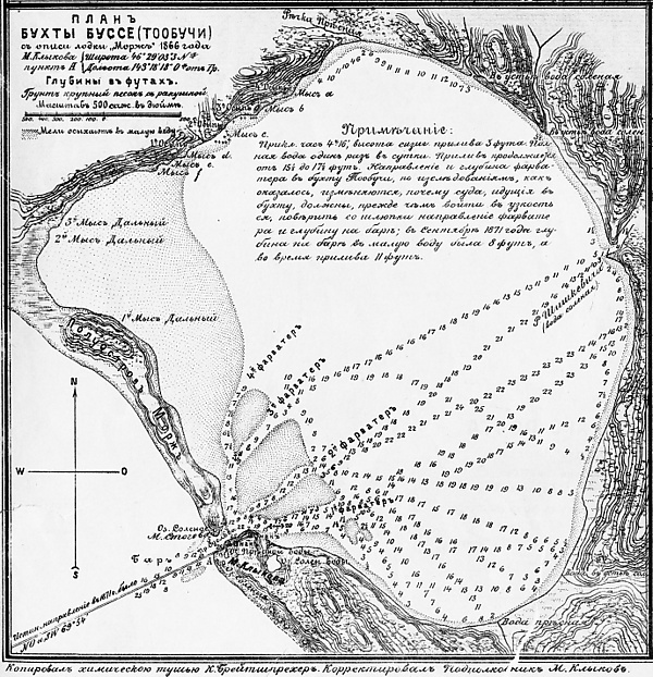 В 1863 году, во время плавания, к востоку от мыса Де-Кастри в проливе Невельского была обнаружена и исследована банка, названная Глазенапа[20].