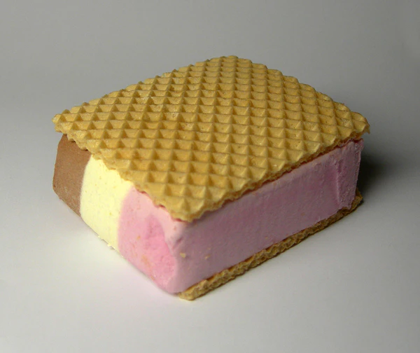 Раньше мороженые-сэндвичи назывались «крем-брюле» (cream between). Покупали небольшой брикет мороженого, завёрнутый в бумагу, и клали его между двумя вафлями.