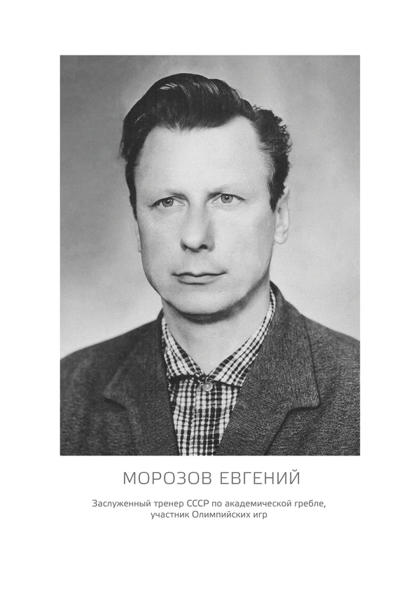 Евгений Михайлович Морозов (12 января 1929, Ленинград — 23 марта 2021, Великий Новгород[3]) — советский гребец и тренер высшей категории по академической гребле. Чемпион СССР 1950 года[4]. Участник Олимпийских игр 1952 года. Заслуженный тренер СССР (1969). Почётный гражданин Великого Новгорода (1999).
