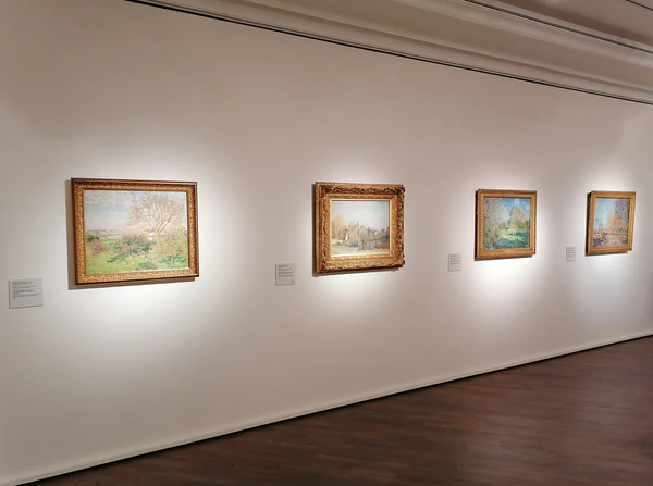 Сислей и наиболее близкий ему по духу импрессионист Камиль Писсарро нередко писали зимние виды, с удовольствием передавая сложную игру цветовых рефлексов на снегу. Однако в этой работе мастер не спешит ошарашить зрителя сложной игрой оттенков белого: судя по виду снежных облаков, сверкающий осенним золотом, но уже покрытый первым снегом Лувесьенн только готовится к серьёзной зиме. Нежный колорит и мягкий рассеянный свет напоминают о том, что в конце 1860-х годов Сислей был учеником Камиля Коро[5].
