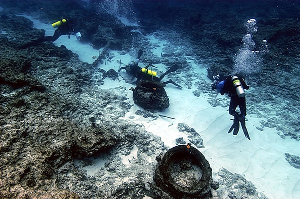 Помимо многочисленных находок в море, некоторые затонувшие корабли были исследованы в озёрах. Наиболее примечательными являются прогулочные баржи Калигулы в озере Неми, Италия. Корабли в Неми и другие места кораблекрушений иногда приносят предметы, представляющие уникальную художественную ценность. Например, на затонувшем Антикитерском корабле находилась поразительная коллекция мраморных и бронзовых статуй, включая «Антикитерского юношу». Корабль, обнаруженный в 1900 году греческими дайверами, затонул, вероятно, в I веке до н. э. и, возможно, был отправлен римским полководцем Суллой для перевозки добычи в Рим. Дайверы также извлекли из затонувшего корабля знаменитый Антикитерский механизм, который считается астрономическим калькулятором[15].