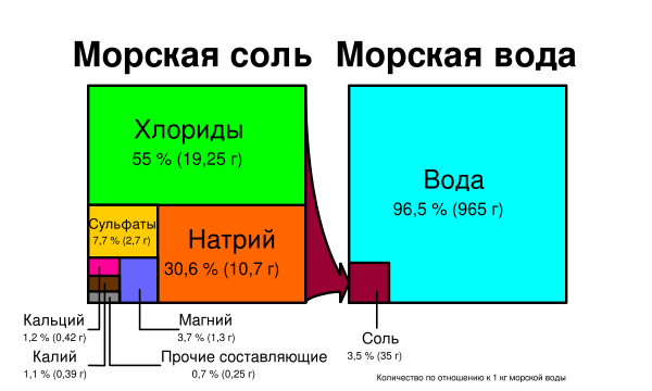 Морска́я вода́ — вода морей и океанов. Солёность Мирового океана составляет в среднем 3,47 % (34,7 ‰), с колебаниями от 3,4 до 3,6 % (34—36 ‰). Это значит, что в каждом литре морской воды растворено приблизительно 35 граммов солей (в основном хлорида натрия). Это соответствует 0,6 моль/литр (в предположении, что вся соль представляет собой NaCl, что на самом деле не так)[1].