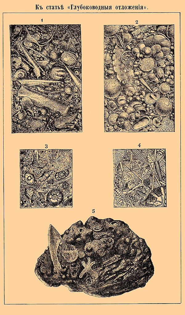 Научное исследование осадков дна морей и океанов, в достаточной степени началось лишь во второй половине XIX века, благодаря многочисленным специальным экспедициям, из которых, как важнейшие по достигнутым результатам, следует привести плавания на судах «Челленджер», «Блэк», «Травальер», «Талисман» и др.