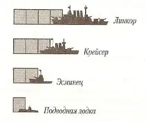 - 4 корабля — 1 клетка («однопалубные»; торпедные катера)