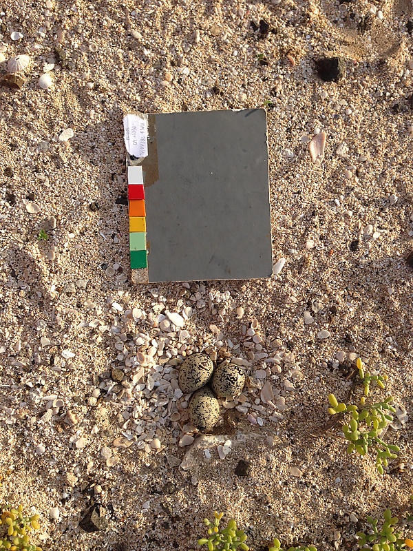 Морские зуйки гнездятся поодиночке или рыхлыми колониями. Гнездо — небольшая ямка, подготовленная самцом на голой земле, часто на возвышенности или у кустов, чтобы иметь обзор и защиту от хищников[32]. Внутри — камешки, ракушки, рыбьи кости, веточки, трава и мусор[8]. Обычно в кладке три яйца, но встречаются и одна-две. В свежих кладках яйца открыты, по мере инкубации количество материала увеличивается, и яйца становятся почти полностью укрыты[1]. Во время инкубации птицы покидают гнездо для кормёжки и других нужд, а для маскировки и теплоизоляции используют гнездовой материал[33]. Количество материала регулируется птицами: при искусственном увеличении или уменьшении они восстанавливают исходный объём за сутки[8]. Это важно для теплоизоляции и защиты от хищников, но избыток материала может привести к перегреву[34].[34] Инкубация — поддержание температуры яиц (37–38 °C) для развития эмбрионов, основное тепло даёт насиживающая птица[35]. Яйца инкубируются 20–25 дней обоими полами: самки днём, самцы ночью[36]. Самки обычно теряют массу в течение дня, несмотря на смену с самцами, что связано с расходом жировых запасов и испарением воды[37].