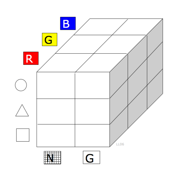 Возможные сочетания: А1, Б3, В2, или А1, Б2, В3, или А2, Б1, В2 и т. д. Общее количество сочетаний в морфологическом ящике равно произведению чисел элементов на осях. В нашем примере: 4*5*3 = 60.