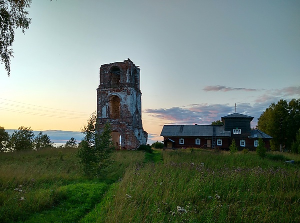 Объект культурного наследия № 2900000764 — Кирпичная трёхъярусная колокольня, построенная, предположительно, в последней четверти 18-го века. В 1815—1819 годах к колокольне была пристроена новая Богородице-Рождественская церковь, взамен старой, повреждённой пожаром. На колокольне был полукруглый купол, завершавшийся высоким шпилем. В советское время церковь была закрыта и разобрана[13][14].
