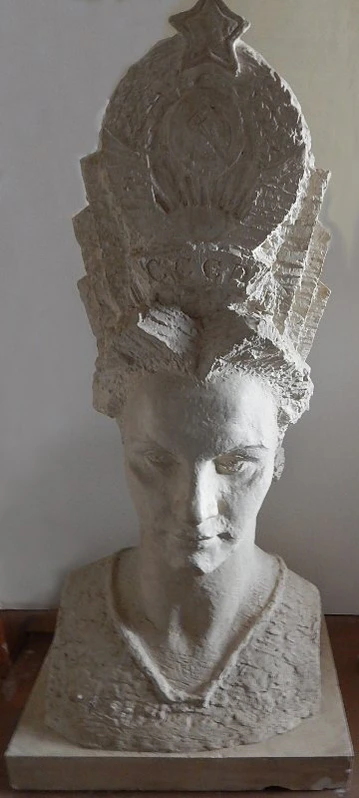 Скульптурный портрет представляет обобщённый символический образ молодой женщины. Лицо произведения имеет крупные черты. Изображён высокий лоб, широкие брови, прямой нос и глубоко посаженные небольшие глаза с волевым взглядом, обращённым к зрителю. Волосы уложены в высокую причёску и увенчаны многоярусным головным убором с гербом СССР. Одежда с V-образным воротом выполнена в оплечном формате, что подчёркивает акцент на чертах лица. Поверхность скульптуры шероховатая. В области лица проработка деталей выполнена тщательнее и тонирована белой краской. Размер работы составляет 112×55×46 см. Невысокий прямоугольный постамент имеет сглажённую поверхность, тонированную белой краской.