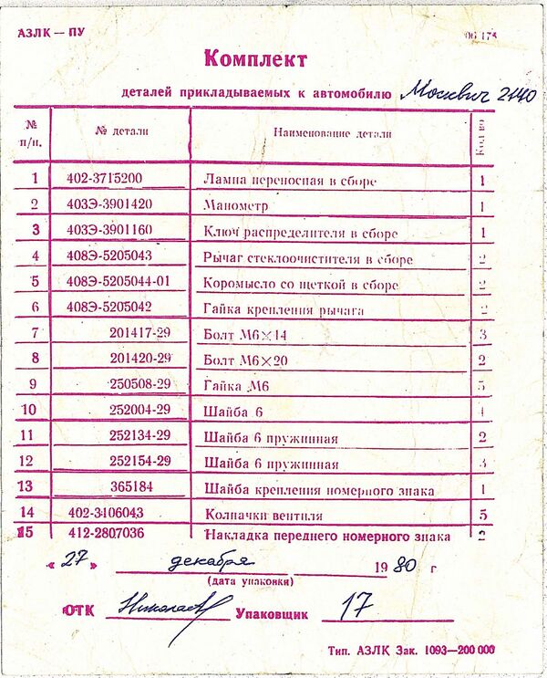 | Производитель | АЗЛК | ||||||||||||||||||||||||||||||||||||||||||||||||||||||