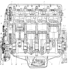 Блок цилиндров был выполнен из алюминия с чугунными сменными гильзами, что позволяло капитально ремонтировать двигатель простой заменой гильз, не требовавшей серьёзного станочного оборудования расточки, необходимой в случае чугунного блока цилиндров.