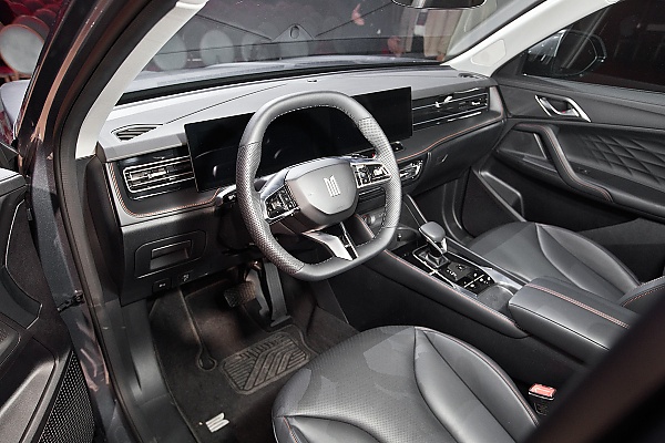 В салоне автомобиля установлены два дисплея диагональю 12,3 дюйма каждый, объединённые в единый блок. Количество физических кнопок сведено к минимуму[2].