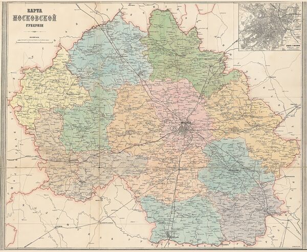 | Московская губерния в 1708 году | Карта соответствия границ Московской области и губернии | Шоссейные и грунтовые дороги Московской губернии |