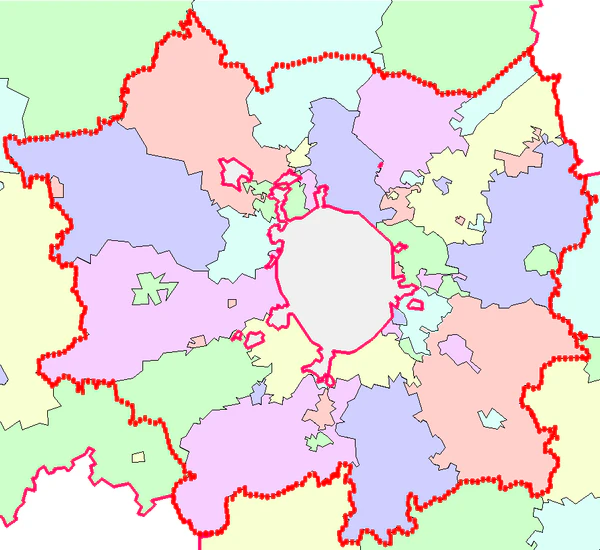 В Московской области расположена часть одной из крупнейших агломераций мира — московской (в зависимости от методов подсчёта населения занимает 15-18 место)[134]. В настоящее время под Московской агломерацией в широком масштабе подразумевается не только Москва с непосредственно примыкающими к ней населёнными пунктами, а Москва с двумя пригородными поясами и вся Московская область (столичный регион) с третьим поясом[102][135][136]. Пригородная зона Москвы, границы которой проходят на расстоянии 50—70 км от Москвы[135] по мнению географа В. Г. Глушковой и является собственно Московской агломерацией (со включением Москвы)[135].