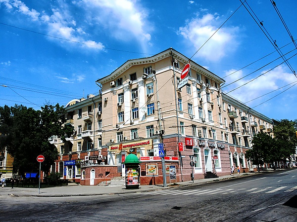 На недлинной этой улице справочник 1914 года указывал гостиницу «Интернациональ» — по северной стороне улицы перед Таганрогским проспектом, частное реальное училище М. Ф. Шкитко и частную же мужскую гимназию Г. П. Беловольского — оба эти учебные заведения находились у нынешнего Газетного переулка. А все остальные — склады-магазины: по продаже семян садово-огородных культур, посуды, хрусталя, готового платья, книг и писчебумажных принадлежностей, мебели, церковной утвари, колониальных товаров и так далее.