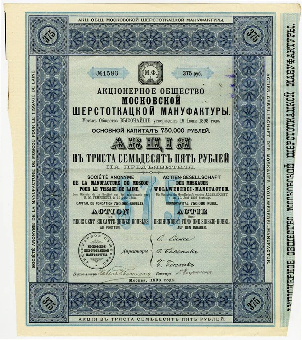 Предприятие акционерного общества Московской шерстоткацкой мануфактуры, Устав которого был Высочайше утвержден 19 июня 1898 г.[2] ведет свою историю с 1889 г., со дня, когда московская купчиха С. Ф. Сакс организовала полукустарное шерстоткацкое производство в арендуемом помещении на третьем этаже кирпичного здания на западе Москвы. Изначально мануфактура С. Сакс располагала 24 ручными ткацкими станками, вырабатывавшими гладкую шерстяную ткань, а также 16 жаккардовыми — для производства узорчатых тканей.[3]