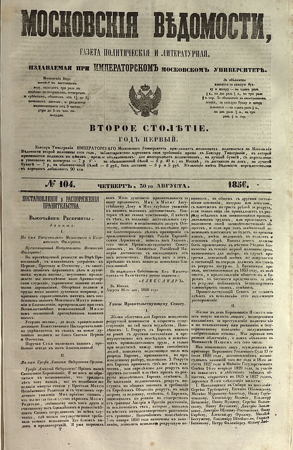 - Электронные копии «Московских ведомостей» в путеводителе РНБ «Газеты в сети и вне её»