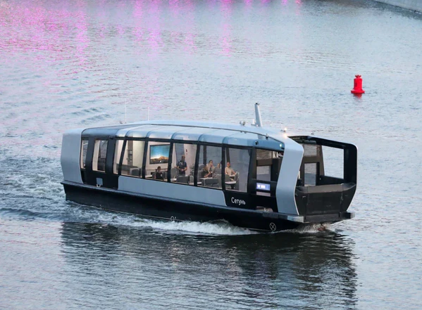 На начало 2024 года 21 экологичное речное электросудно, созданное по российским технологиям, используется в системе речного транспорта. Первая модель была впервые запущена в марте 2022 года[12]. Судна имеют длину 22 метра и рассчитаны на 42 посадочных места, включая два специальных места для маломобильных граждан. В салоне предусмотрены информационные экраны, USB-зарядки. Также предусмотрены площадки с местами для парковки самокатов и велосипедов. Максимальная скорость судов составляет 12 узлов, крейсерская скорость — 8 узлов[13][14].