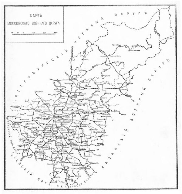 В ходе военной реформы в Российской империи был образован, 6 августа 1864 года, на территории 12 центральных губерний Московский военный округ[6]. В состав Московского военного округа входили следующие губернии России: Московская, Тверская, Ярославская, Вологодская, Костромская, Владимирская, Нижегородская, Смоленская, Калужская, Тульская, Рязанская и Тамбовская. Округ занимал территорию более 1 млн. 138 тыс. квадратных километров. А это территория Англии, Германии и Франции вместе взятых.