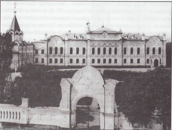 В одном из отдаленных кварталов Москвы, в глухом и кривом переулке, за Покровкой, старинное каменное здание возвышается на пригорке… Для хранения древних хартий, копий с договоров ничего нельзя было приискать безопаснее и приличнее сего старинного каменного шкапа с железными дверьми, ставнями и кровлею. Всё строение было наполнено, завалено кипами частью разобранных, частью неразобранных старых дел: только три комнаты оставлены были для присутствующих и канцелярских.