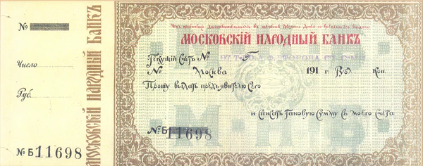 - Прием срочных и бессрочных вкладов. Билеты о приеме вкладов выдавались на сумму не менее ста рублей.
