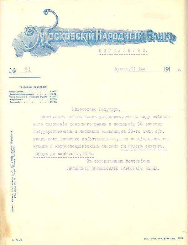 - Выдача переводных билетов, векселей и кредитивов как внутри Российской Империи, так и за ее пределами.