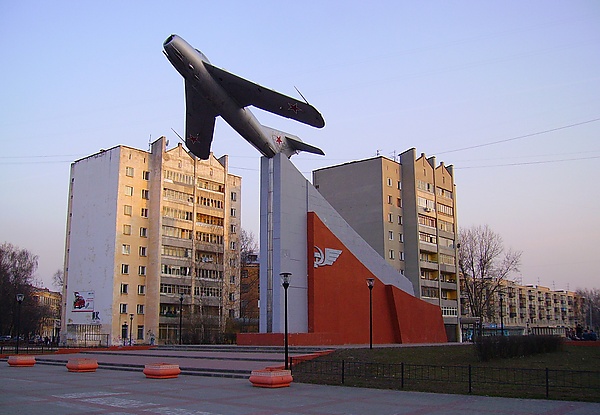 - Монумент авиаторам-авиастроителям — истребитель МиГ-15 (1985 г., авторы: А. Елизаров, Ю. Грузимов) — ул. Ярошенко (Бульвар Авиастроителей)
