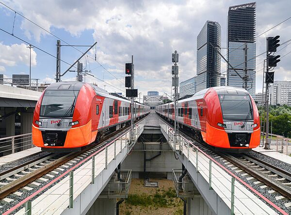 В качестве подвижного состава городской электрички используются электропоезда ЭС2Г «Ласточка» из модельного ряда «Siemens Desiro». Каждый поезд состоит из 5 бестамбурных вагонов общей вместимостью 1200 пассажиров; каждый вагон имеет две прислонно-раздвижные двери с каждой стороны. Поезда получают электропитание через крышевые токоприёмники от верхней контактной сети номинального напряжения 3000 В постоянного тока, как и на прочих линиях Московского железнодорожного узла (против 825 В и контактного рельса на метрополитене)[96]. Поезд оснащён бесшумными тяговыми редукторами, шумовибропоглощающей подвеской, вагонными тележками c дисковыми тормозами с накладками из специальных композитных материалов[97].