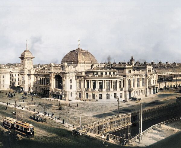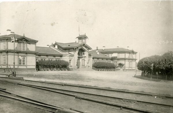 21 мая 1897 года императорским указом «Обществу Рыбинской железной дороги» было утверждено третье дополнение к уставу, по которому компания переименовалась в «Общество Московско-Виндаво-Рыбинской железной дороги»[25]. При этом было разрешено строительство железнодорожной линии от Москвы до Виндавы, а также от местечка Сокольники до станции Дно и от станции Савелино до Красного Холма. Председателем правления Общества с 1898 года был инженер путей сообщения Николай Степанович Островский. По мере строительства Московско-Виндавская линия вводилась в эксплуатацию постепенно, отдельными участками, и сооружалась как единый ансамбль. Здания и сооружения I и II классов были выполнены каменными, с цементными, бетонными или металлическими перекрытиями. Здания станций III и IV классов были деревянными. У дороги был свой цвет — все гражданские сооружения были окрашены в «зеленовато-серый цвет при темно-оливковых отводах фасок и окаймлений». Характерной чертой Московско-Виндавской линии были низкие платформы[26].