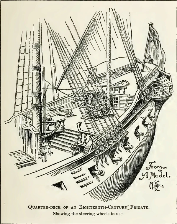 Изначально управление кораблём осуществляли со шканцев (квартердека) — кормовой части палубы, как правило, возвышенной для лучшего обзора. Расположение шканцев в непосредственной близости от рулевого устройства позволяло максимально упростить рулевой привод. Там же, внутри юта, обычно располагали и каюту капитана, что обеспечивало ему быстрый доступ на шканцы.
