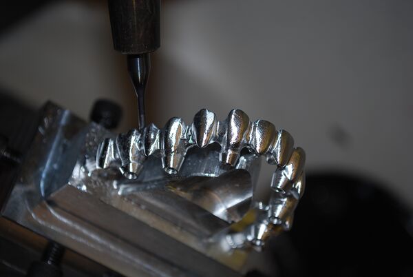 - Препарирование здоровых зубов под опорные элементы.
