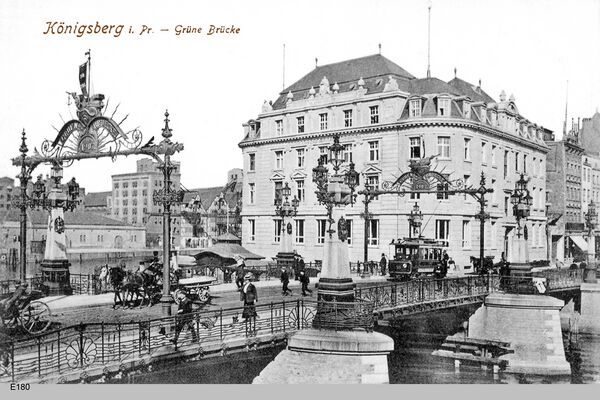 Вторым по возрасту был Зелёный мост (нем. Grünebrücke). Он был построен в 1322 году. В 1907 году мост был перестроен, а в 1972, как и Лавочный мост, был заменен на Эстакадный мост. Этот мост соединял Кнайпхоф и Форштадт. Название моста происходит от цвета краски, в который традиционно красили опоры и пролётное строение моста. В XVII веке у Зелёного моста гонец раздавал прибывшие в Кёнигсберг письма. В ожидании корреспонденции здесь собирались деловые люди города. Здесь же в ожидании почты они обсуждали свои дела. Неудивительно, что именно в непосредственной близости от Зелёного моста в 1623 году была построена кёнигсбергская торговая биржа. В 1875 году на другом берегу реки Преголя, но также в непосредственной близости от Зелёного моста было построено новое здание торговой биржи, сохранившееся до сих пор (ныне Музей изобразительных искусств).
