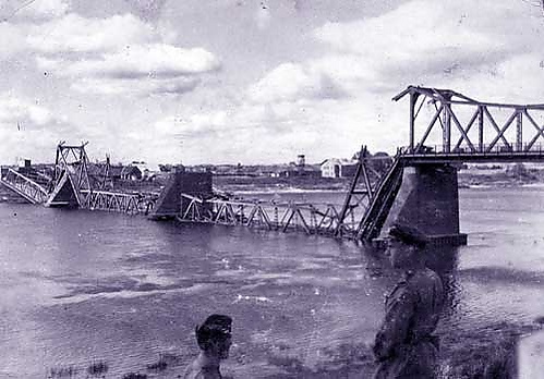 26 июня 1941 года диверсанты из 800 полка Бранденбург, рано утром, переодетые в красноармейскую форму, захватили мост перебив охрану и обеспечили переправку танков 56 корпуса Манштейна через Двину. Во время Второй мировой войны был уничтожен настил моста. При отступлении немецких войск был взорвано несколько пролётов моста со стороны Гривы, что хорошо видно на снимке. Временно восстановлен из деревянных конструкций. Позднее капитально восстановлен.