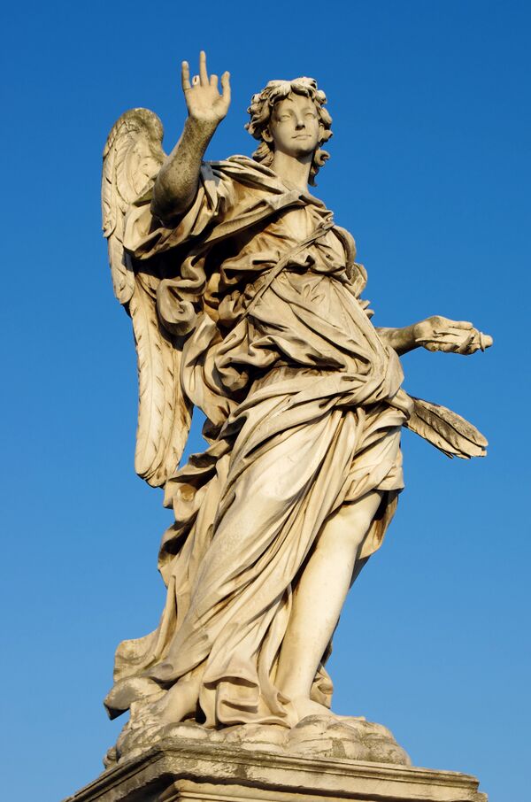 При папе Павле III в 1540-х гг. скульптору Раффаэлло да Монтелупо было поручено создать четырнадцать скульптур ангелов для украшения моста Сант-Анджело. Позднее по распоряжению папы Климента IX эти скульптуры были заменены новыми, созданными выдающимся мастером итальянского барокко Джованни Лоренцо Бернини с учениками. Десять статуй ангелов с орудиями Страстей были выполнены в 1668—1669 годах. Бернини собственноручно закончил только два оригинала: Ангела с надписью «I.N.R.I.» и Ангела с терновым венцом, но эти статуи оставил себе Климент IX. Сейчас они находятся в римской церкви Сант-Андреа-делле-Фратте. Боццетти (гипсовые модели) скульптур, созданные Бернини, хранятся в Пинакотеке Ватикана.