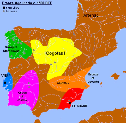 Установить точные границы распространения культуры непросто, поскольку в ряде мест друг на друга накладываются признаки сразу трёх культур, существовавших одновременно. Довольно чёткой границей является река Сегура, к северу от которой возникли первые поселения, не связанные с аргарской культурой, но связанные с ламанчской бронзой. Условная линия Эллин — Альбатана — Монтеалегре-дель-Кастильо — Альманса (которая одновременно совпадает с современной административной границей между провинциями Альбасете, Аликанте и Мурсия), составляет южную границу. Долина Виналопо составляет границу между валенсийской и ламанчской бронзой на востоке. Северная граница простиралась до долины Тахо и Серрания-де-Куэнка. Западная граница недостаточно изучена.