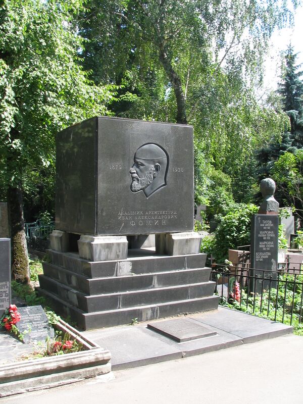 - надгробный памятник И. А. Фомину на Новодевичьем кладбище в Москве (1940 г.; арх. М. А. Минкус).