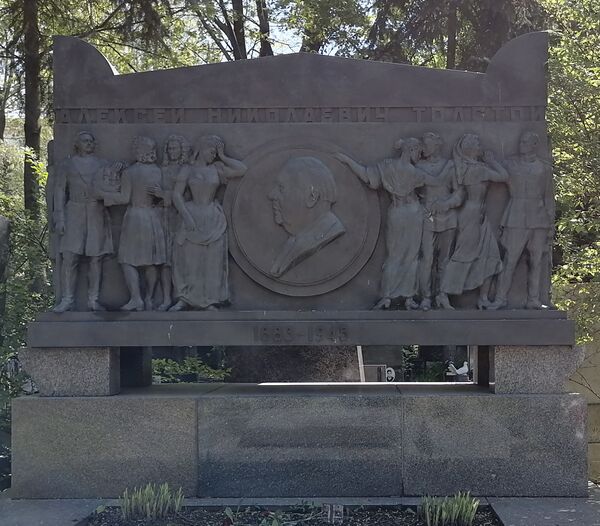 - надгробный памятник А. Н. Толстому на Новодевичьем кладбище в Москве (арх. Л. М. Поляков).