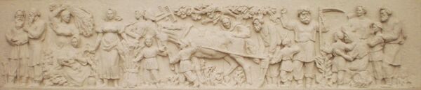 - Рельефы на арке проезда жилого дома в Глинищевском пер. в Москве, арх. В. Н. Владимиров, Г. И. Луцкий.