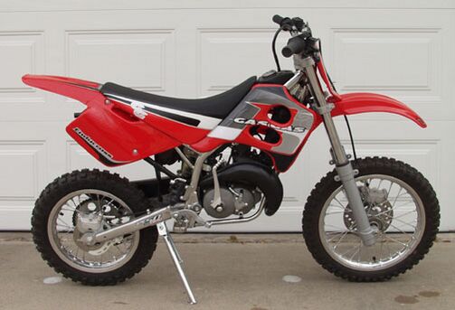 Следует отличать детские кроссовые мотоциклы от питбайков. Питбайки конструируют так, чтобы на них мог ездить и взрослый человек, он имеет удлинённую колесную базу. Детский кроссовый мотоцикл сделан специально для ребёнка. Ребёнок должен свободно ставить обе ноги на землю, сидя в седле, и легко доставать до рычагов управления[12].