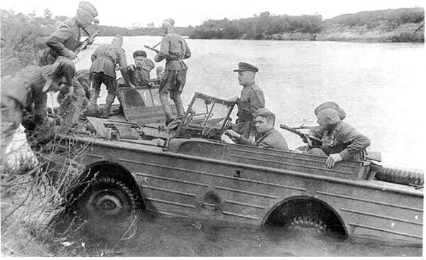 На заключительной стадии войны в апреле 1944 года в Красной армии были сформированы 11 отдельных моторизованных батальонов Особого Назначения (омб ОСНАЗ)[28]. По существу они предоставляли собой моторизованный батальон пехоты с приданными сапёрными подразделениями, предназначенный для форсирования водных преград, удержания и разминирования плацдарма для наступающих войск. Основным средством моторизации омб ОСНАЗ служили автомобили-амфибии американского производства Ford GPA в количестве 100 единиц на батальон, поставленные в СССР под Ленд-лизу[29]. Всего было поставлено по разным источникам от 2200 до 3500 единиц данной модели[30].